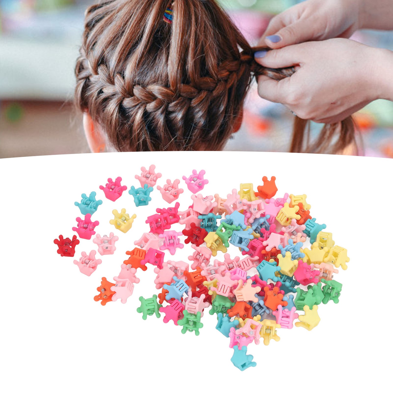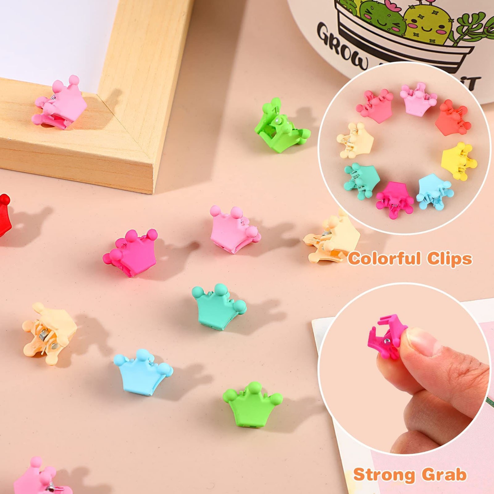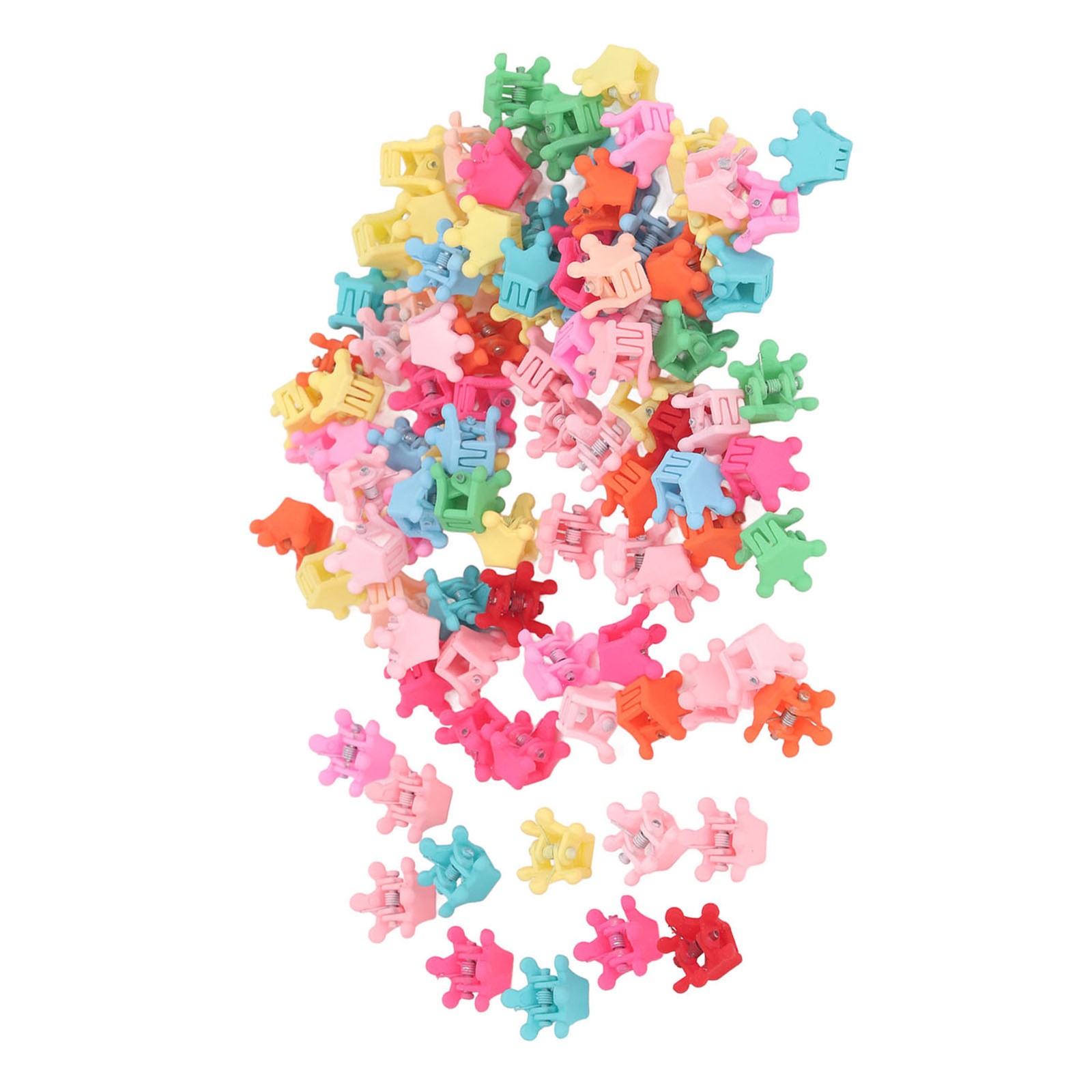 100pcs Mini Crown Hair Claw Clips Colorful Cartoon Strong Hold Lovely Tiny Hair