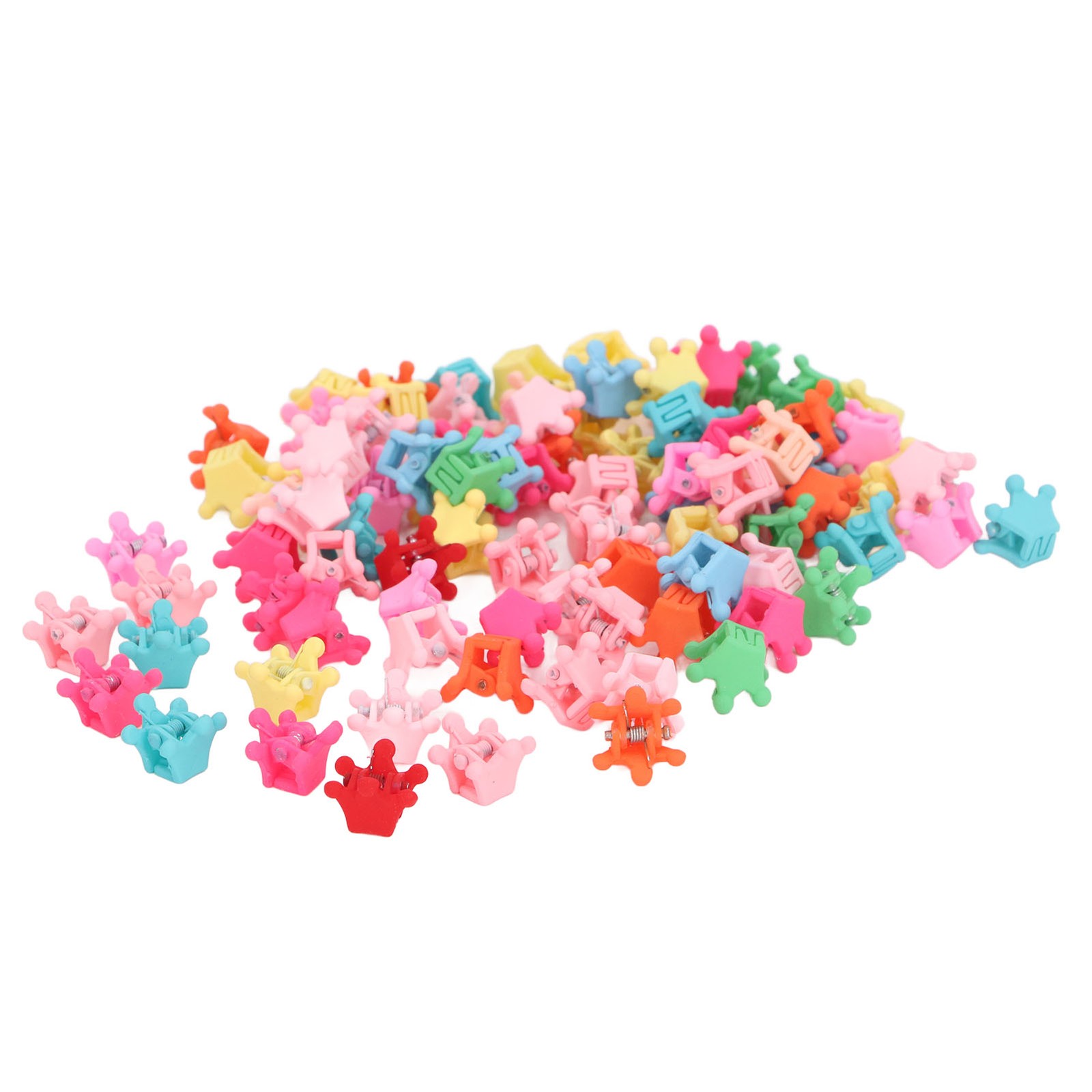 100pcs Mini Crown Hair Claw Clips Colorful Cartoon Strong Hold Lovely Tiny H BLW