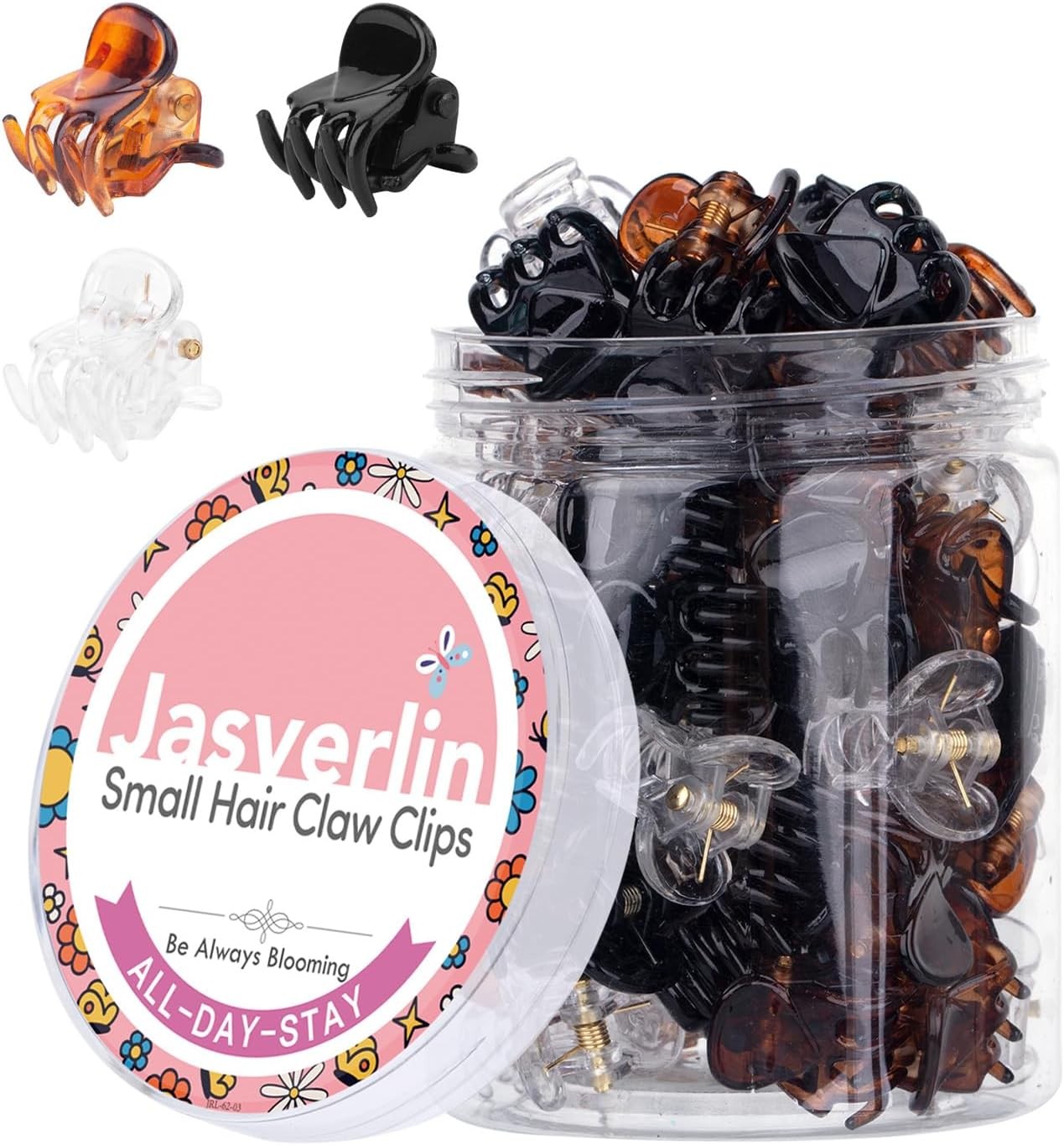 JASVERLIN Small Hair Clips, Black Brown Clear Mini Claw Clips for Women Girls F