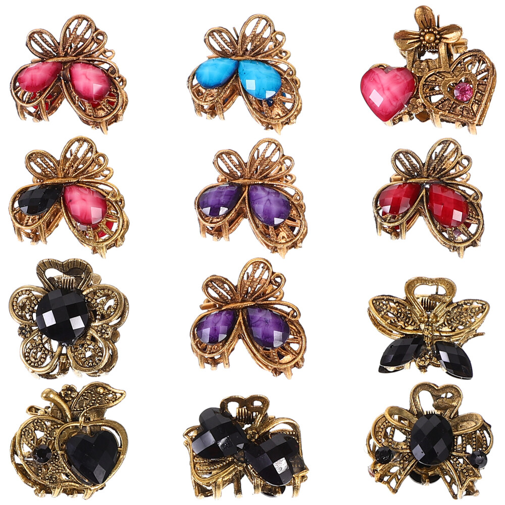 12 Pcs Hair Clips - Vintage Mini Jaw Claw Clips, Metal Hair Clamps, Butterfly Ja