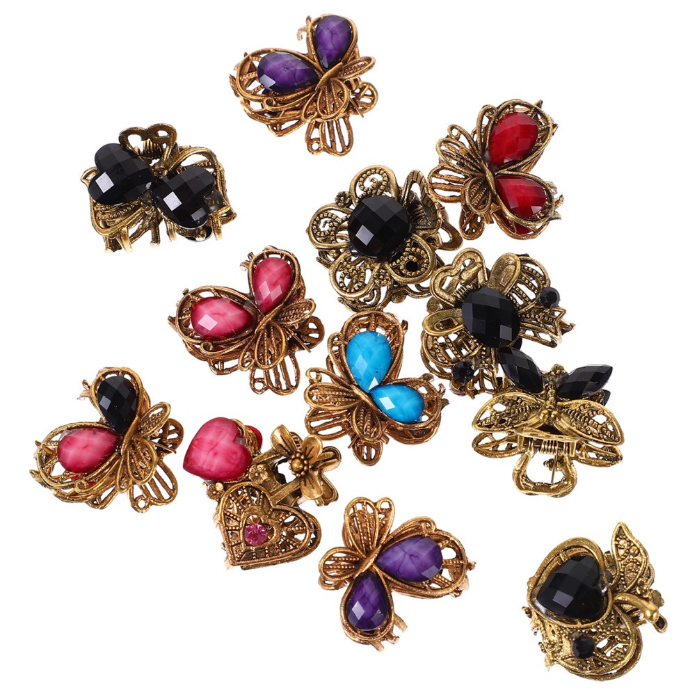 12 Pcs Hair Clips - Vintage Mini Jaw Claw Clips, Metal Hair Clamps, Butterfly J