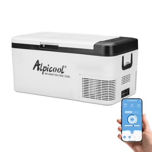 Alpicool S15 17L Compressor Car Fridge Freezer, DC 12v Camping Refrigerator, Portable Mini Cool Box for TruckCampervanRVBoat, -20℃ to 20℃(White)