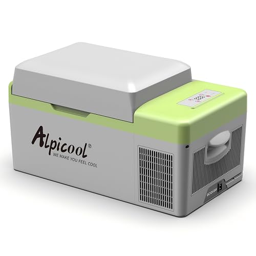 Alpicool S15 17L Compressor Car Fridge Freezer, DC 12v Camping Refrigerator, Portable Mini Cool Box for TruckCampervanRVBoat, -20℃ to 20℃(Green)