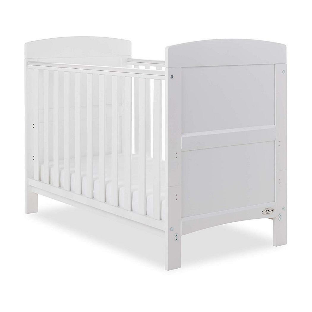 Obaby Grace Cot Bed Mini White Wooden Compact For Baby Toddler Adjustable Base
