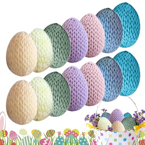 Crochet Easter Eggs 14 Pack - Handmade Knitted Easter Egg Ornaments | Mini Easters Eggs For Basket Stuffers, Table Decor, Wreaths, Garlands, Spring Party Favors Home Decorations, Assorted Colors