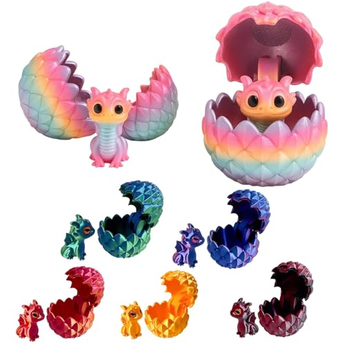 Flavery 6 Pack 3D Printed Dragon in Egg - Mini 3D Eggs with Articulated Crystal Dragon Inside, Cute Fidget Toy, Birthday Gift, Desk Pet Figure(6A1)