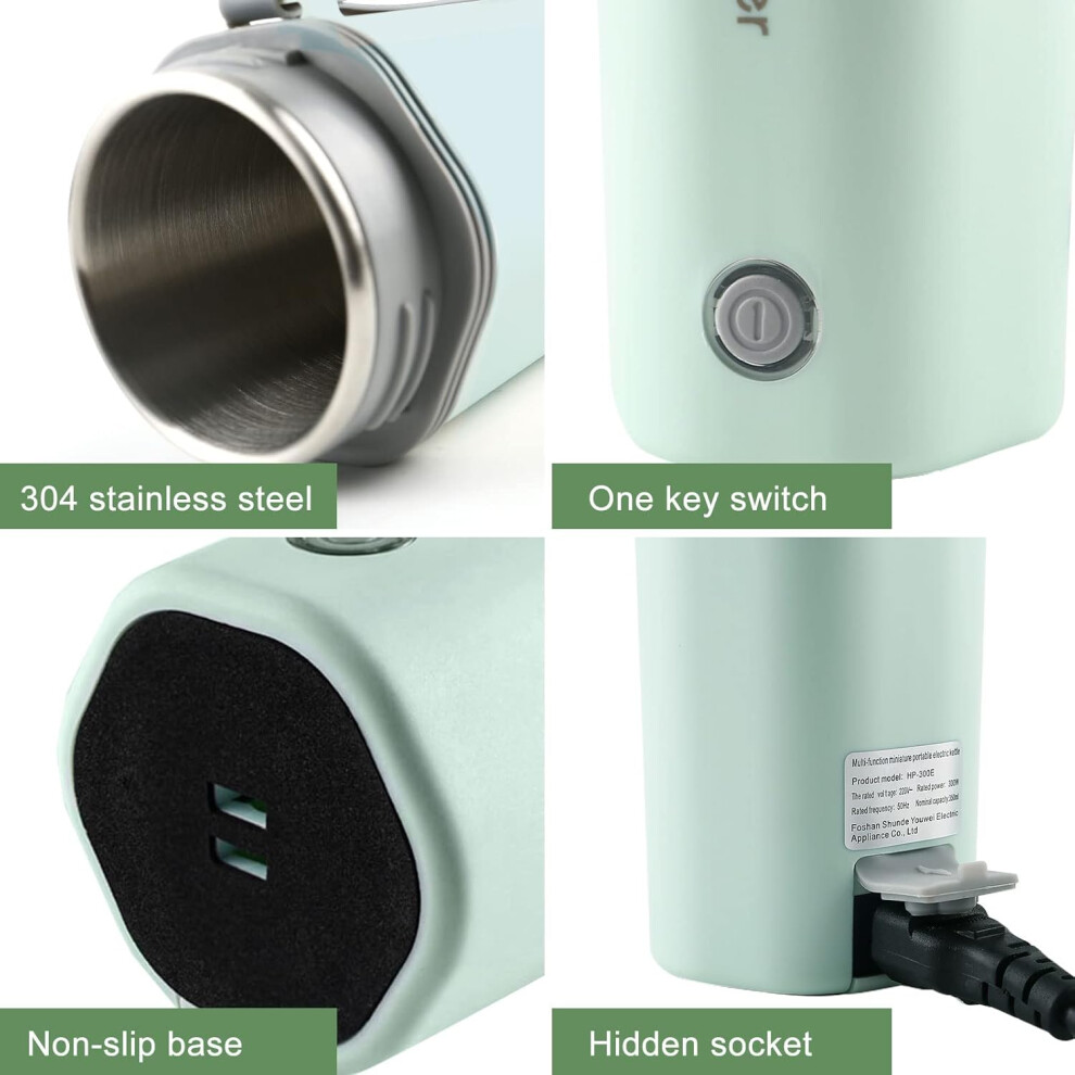 Mini Portable Electric Travel Kettle 400ml, Portable Electric Kettle, Fast Heating Cup, 304 Stainless Steel with 4 Adjustable Temperature Settings, fo