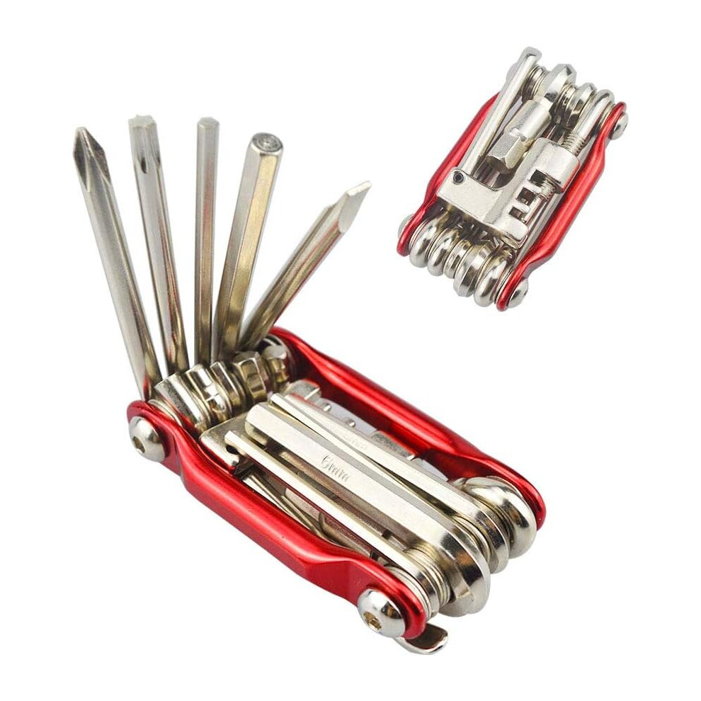 Bike Multitool, 11 in 1 Bicycle Repair Tool, Mini Folding Bike Tool, with Socket Wrench and Hex Screwdriver Set (Red)