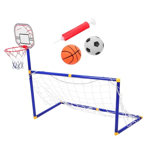 Healeved 2-In-1 Portable Soccer Goal and Basketball Hoop Set, Large Indoor Outdoor Football Gate with Net, Mini Football Training Goal for Home Sports