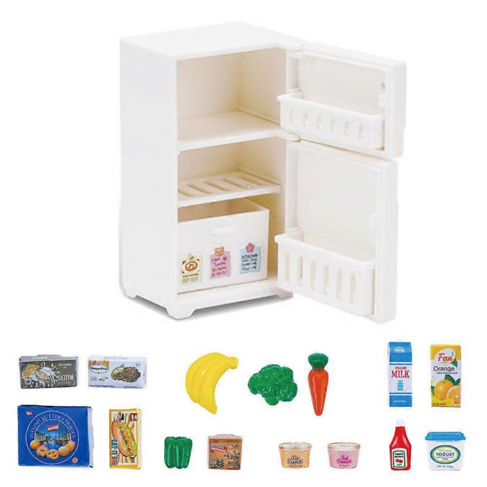 TOPINCN Dollhouse Decoration Accessories Mini Dollhouse Freezer Model Plastic Refrigerator Toy Ornaments with 17 Food Accessories for Kids Pretend Play