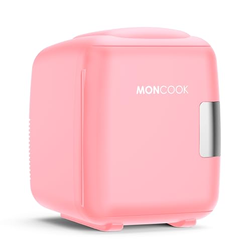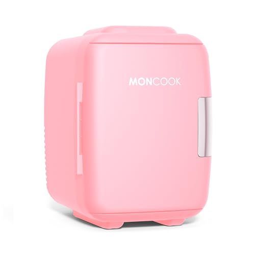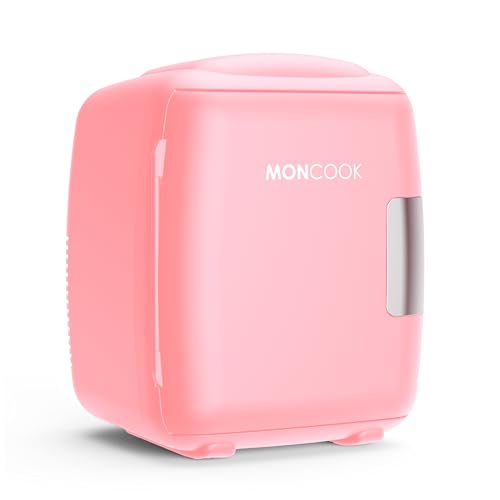 MONCOOK Mini Fridge For Bedrooms - Small, Portable & Quiet Mini Fridges For Skincare, Medicine, Food & Drinks - Cooling & Warming Function - Perfect For Home, Office, Car Or Travel - 5L - Pink Mono