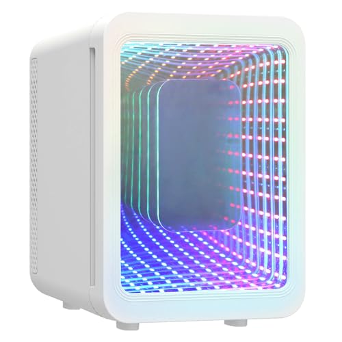 ARTETHYS Mini Fridge for Bedrooms, 4L Car Skincare Fridge with LED Mirror, Gaming Fridges with Infinity Effect for Home Office Skin Care, 220V AC/12V DC