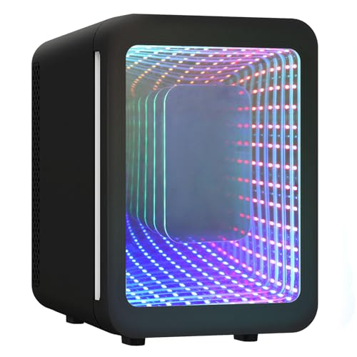ARTETHYS Mini Fridge for Bedrooms, 4L Car Skincare Fridge with LED Mirror, Gaming Fridges with Infinity Effect for Home Office Skin Care, 220V AC/12V DC, Black