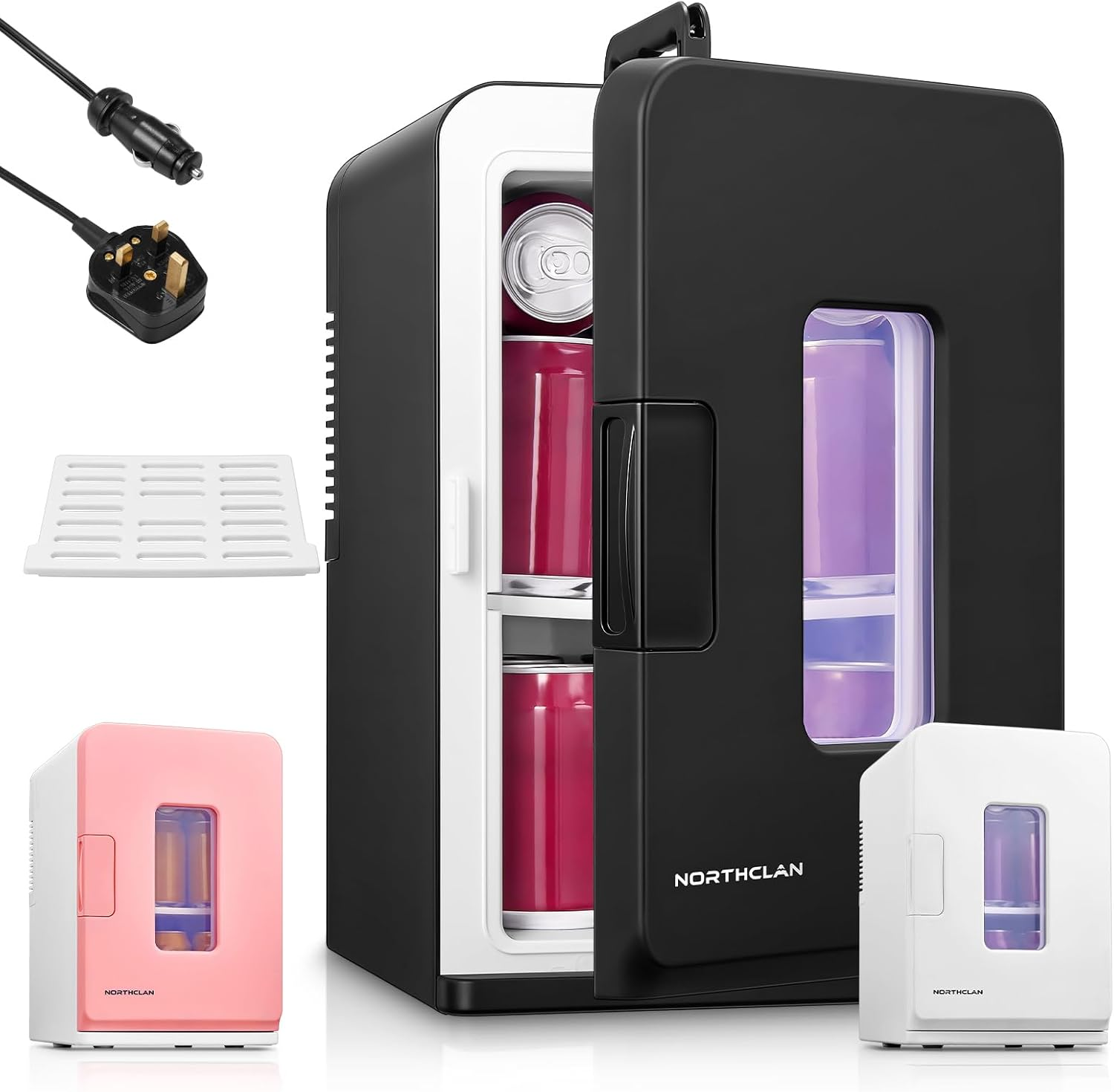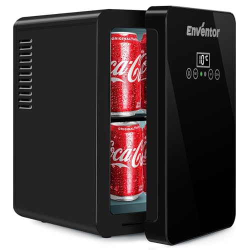 Enventor Mini Fridge 6 Litre, 8 Can Mini Fridges for Bedrooms, AC+12V DC Power Cooler & Warmer, Portable Small Fridge for Car, Travel, Home/Skincare, Makeup, Cosmetics/Drinks, Fruit, Food, Black
