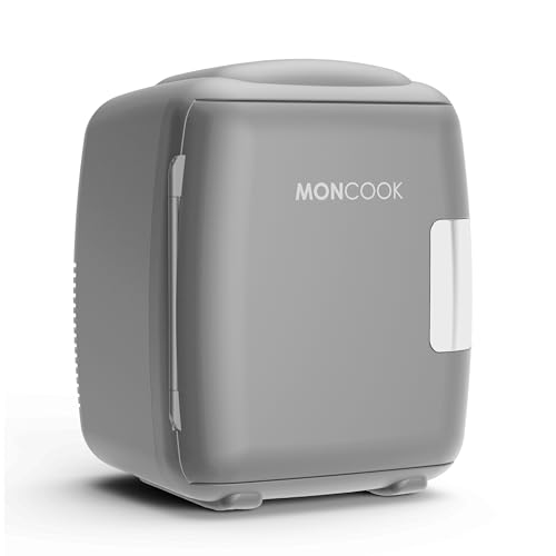MONCOOK Mini Fridge For Bedrooms - Small, Portable & Quiet Mini Fridges For Skincare, Medicine, Food & Drinks - Cooling & Warming Function - Perfect For Home, Office, Car Or Travel - 9L - Grey Mono