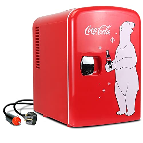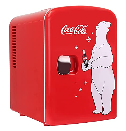 Mini Fridge For Bedrooms 4L Small Fridge 6 Can Table Top Quiet Mini Fridges For Skincare Office Food Drinks Kids Home Car & Travel 12v Portable Cooler Refrigerator by Coca-Cola, Red