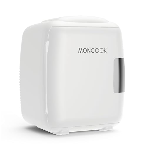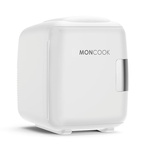 MONCOOK Mini Fridge For Bedrooms - Small, Portable & Quiet Mini Fridges For Skincare, Medicine, Food & Drinks - Cooling & Warming Function - Perfect For Home, Office, Car Or Travel - 9L - White Mono