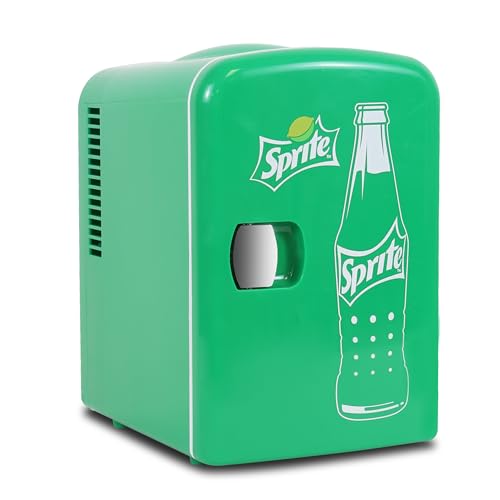 Coca Cola Sprite Mini Fridge For Bedrooms 4L Small 6 Can Table Top Quiet Mini Fridges For Skincare Office Food Drinks Kids Home Car & Travel 12V Portable Cooler Warmer Refrigerator Green