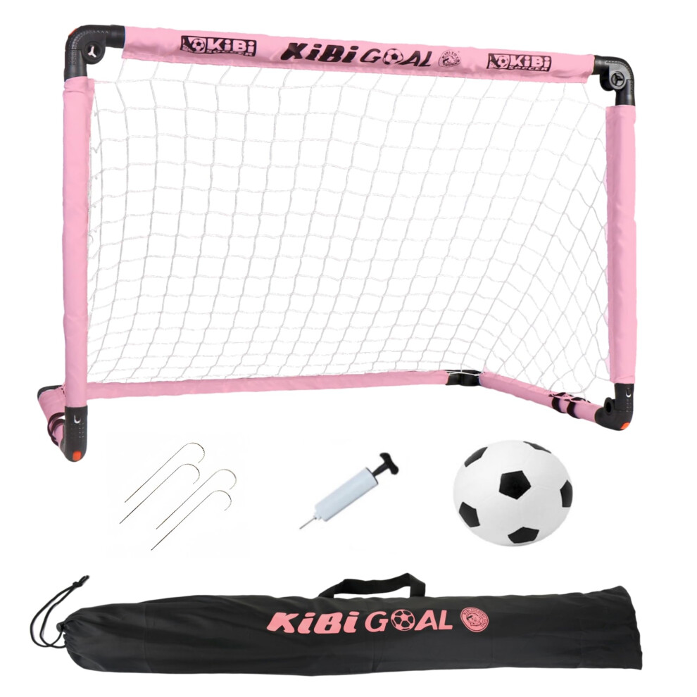 KiBiGOAL Kids Football Goal Pink, Small Foldable Goals for Kids, Girl Mini Foldable Football Goals for the Garden + Indoor + Outdoor 35.43in * 23.62in