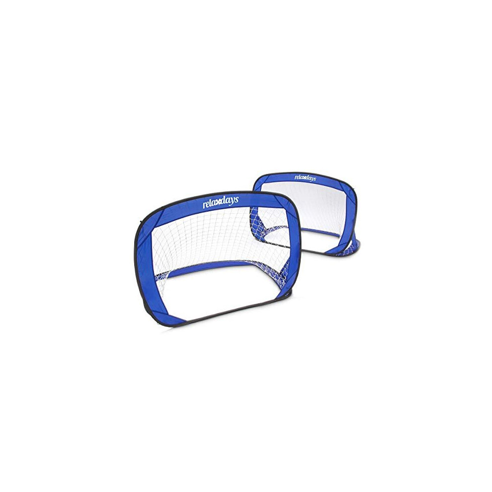 Relaxdays Pop-Up Set of 2 Soccer Football Goals, Folding Children's Goals, Mini, Mobile, with Travel Bag, 80 x 120 x 80 cm, Blue