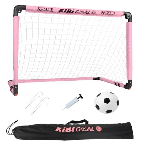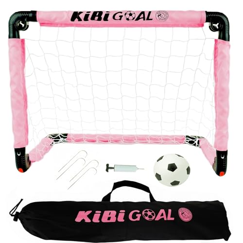KiBiGOAL Toddler Football Goal Pink, Small Foldable Goals for Toddler, Girl Mini Foldable Football Goals for the Garden + Indoor + Outdoor 23.62in * 17.72in Goal Pink + Mini Ball for Girl Toy Gift
