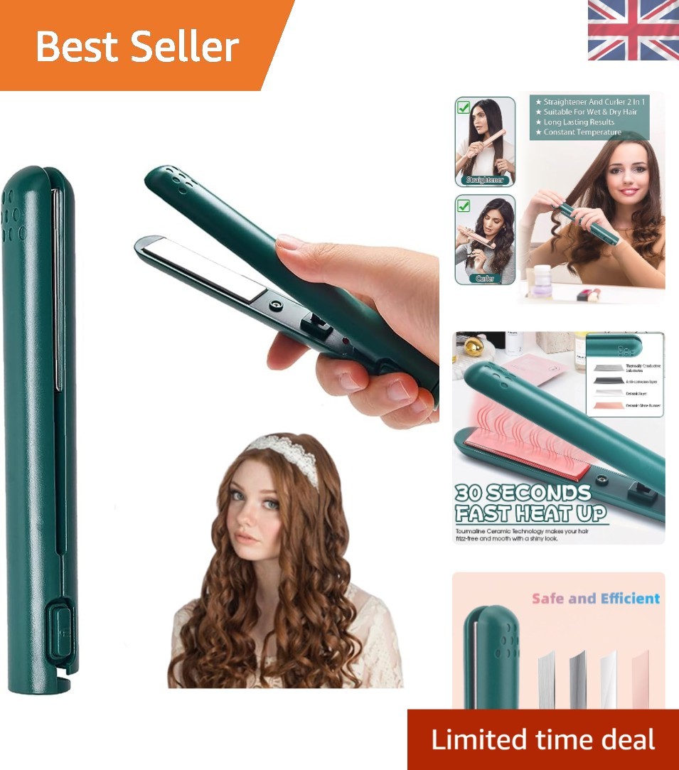 Cordless 2-in-1 Mini Hair Straighteners & Curling Iron - Stylish Green Design