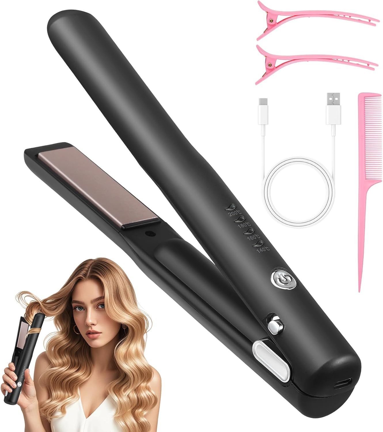 Cordless Hair Straighteners, Mini Travel Portable Hair Straightener and Curler,