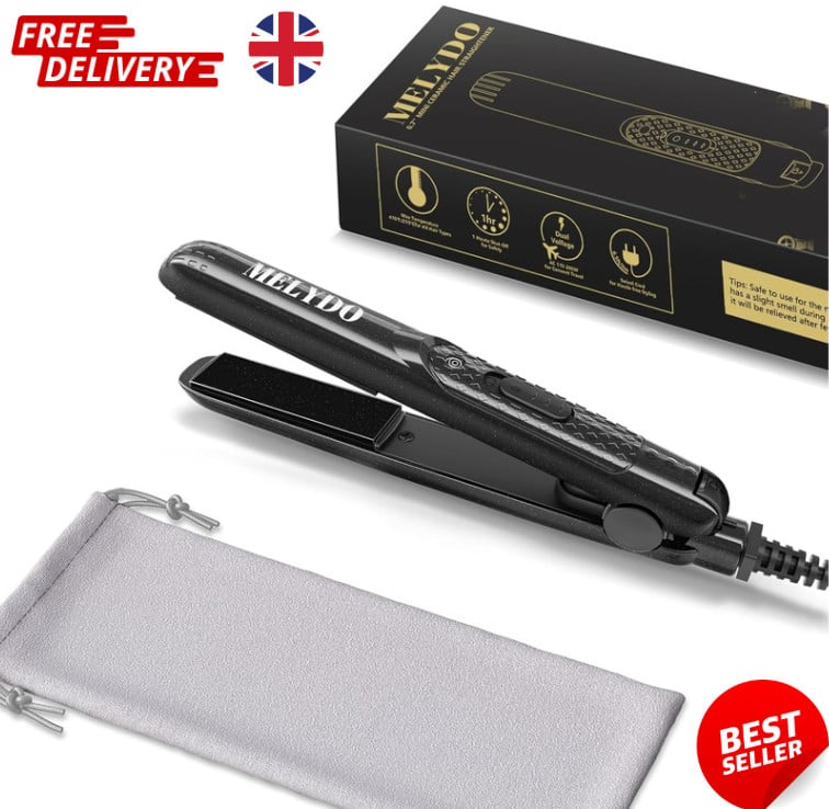 MELYDO Mini Hair Straighteners, Ceramic Straightener for small, Black