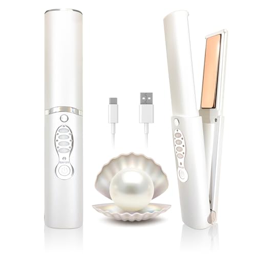 Cordless Hair Straighteners,Rechargeable Mini Straightener Curler 2 in...