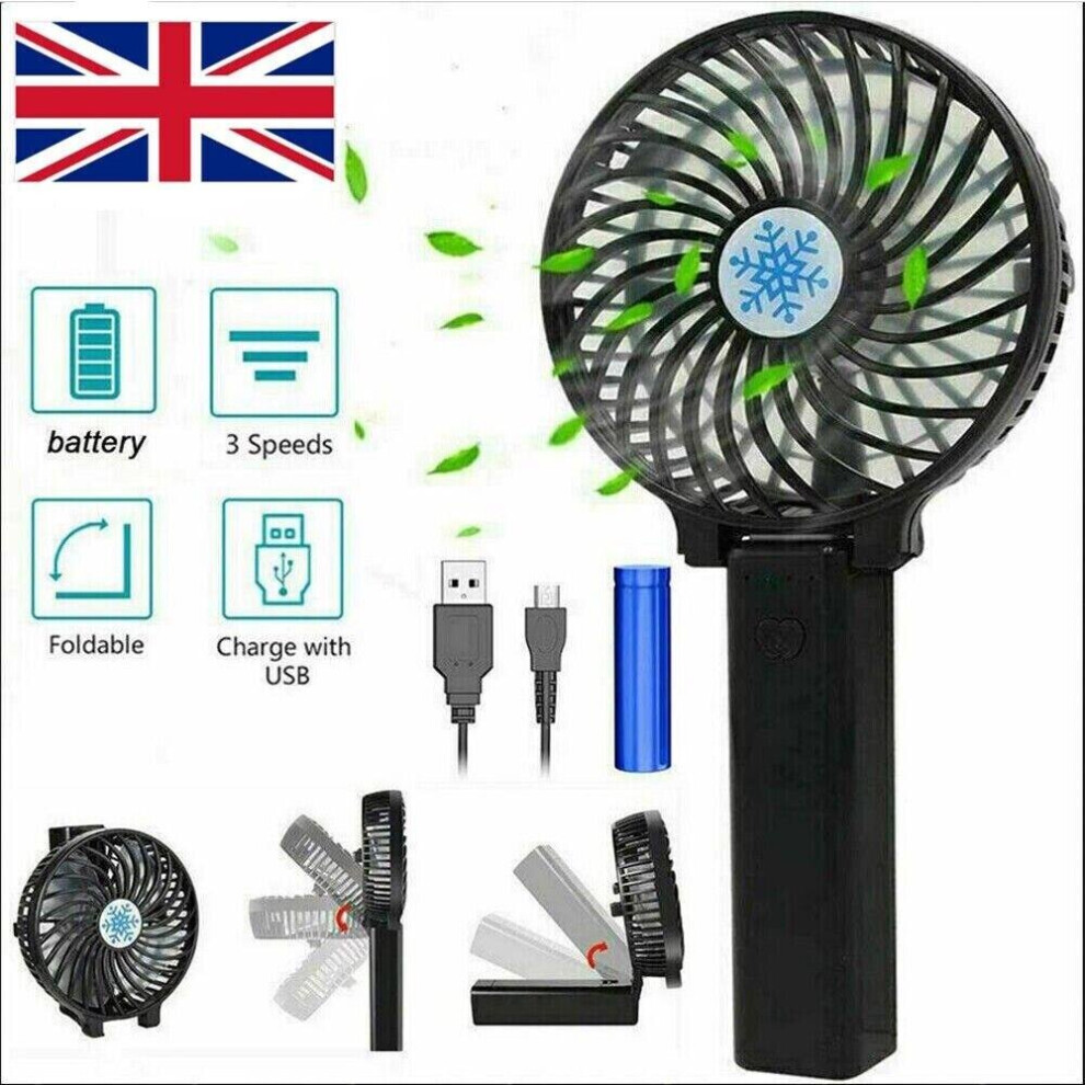 Portable Handheld Fan, Mini USB Hand Fan with Rechargeable Battery and 3 Speeds
