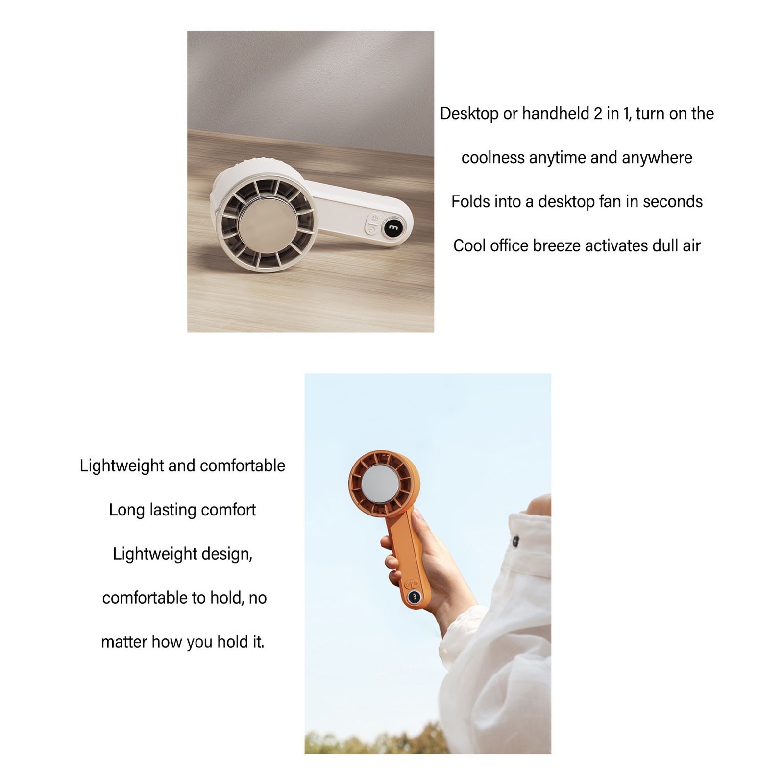 (white) Mini Hand-held Fan Portable Folding Desk Fan USB
