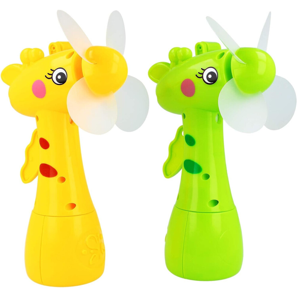 2x Hand-held fan - mini fan with water tank - mini hand-cranked fan with water jet (2 pieces - yellow + green)