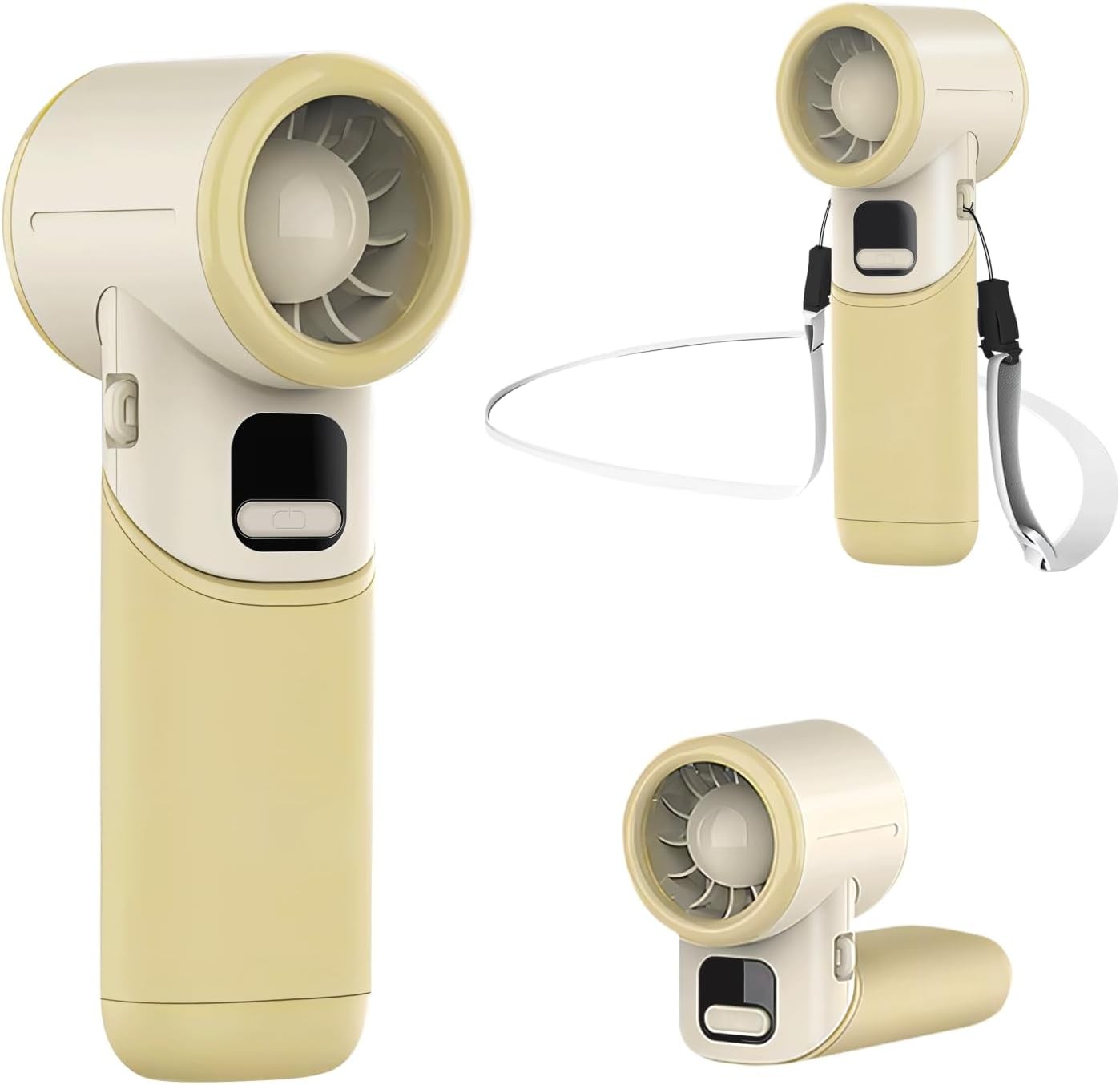 ( White) Portable Fan Handheld Mini Neck Hand Fan Cooler Adjustable for Office Outdoor Travel