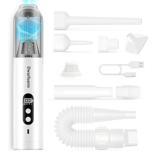 Dwarfuarm Car Vacuum Cleaner, 5-in-1 Portable Mini Cordless Handheld Vacuum with 16000pa Suction Power, Type-C Charge, 2 Suction Modes, LED and SOS for Car, Office Desk, Keyboards (White)