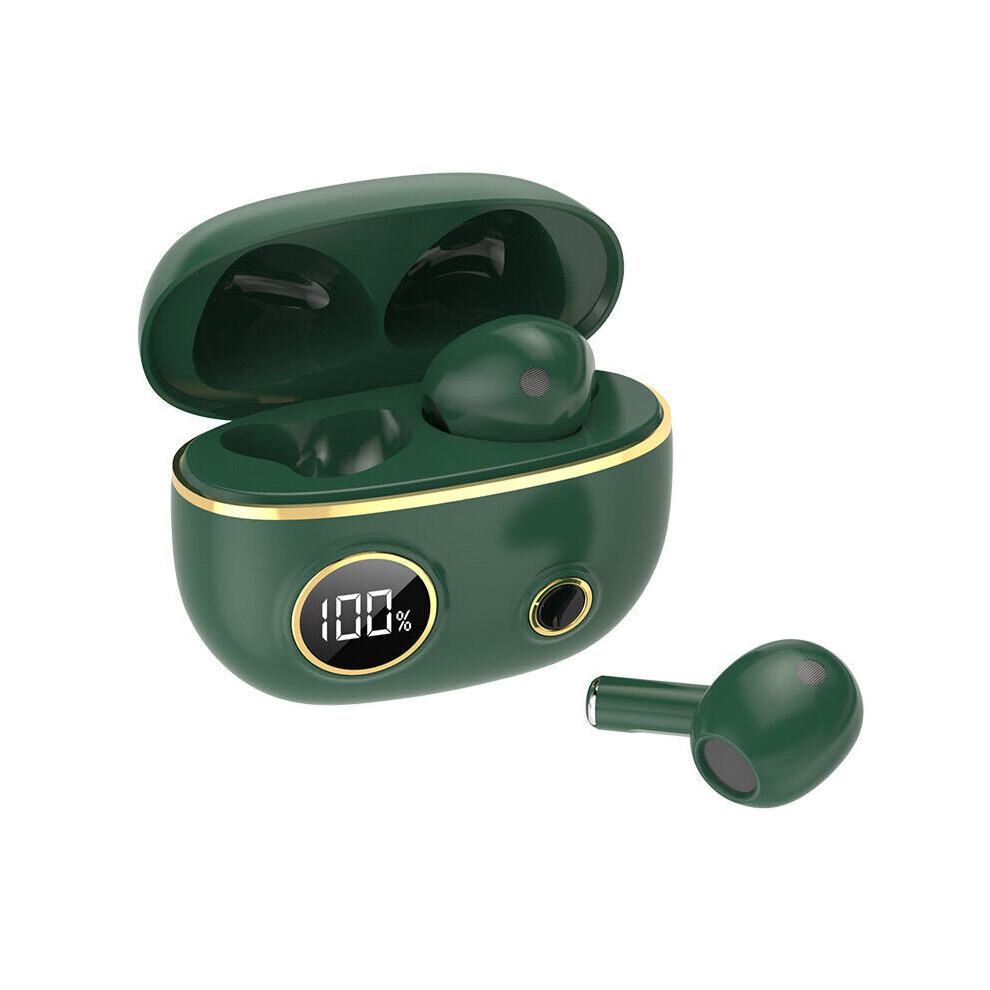 (Green) TWS bluetooth Wireless Headphones LED Digital Display Mini Sports HiFi D Stereo Sound Headset With Microphone