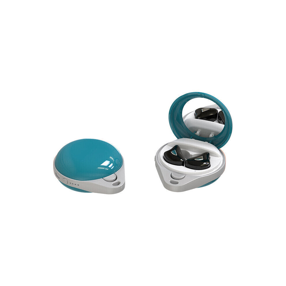 (Sky Blue) TWS bluetooth Earphone Mini Wireless Earbuds HiFi 6D Bass Gaming Touch Control Headset With Portable Mirror