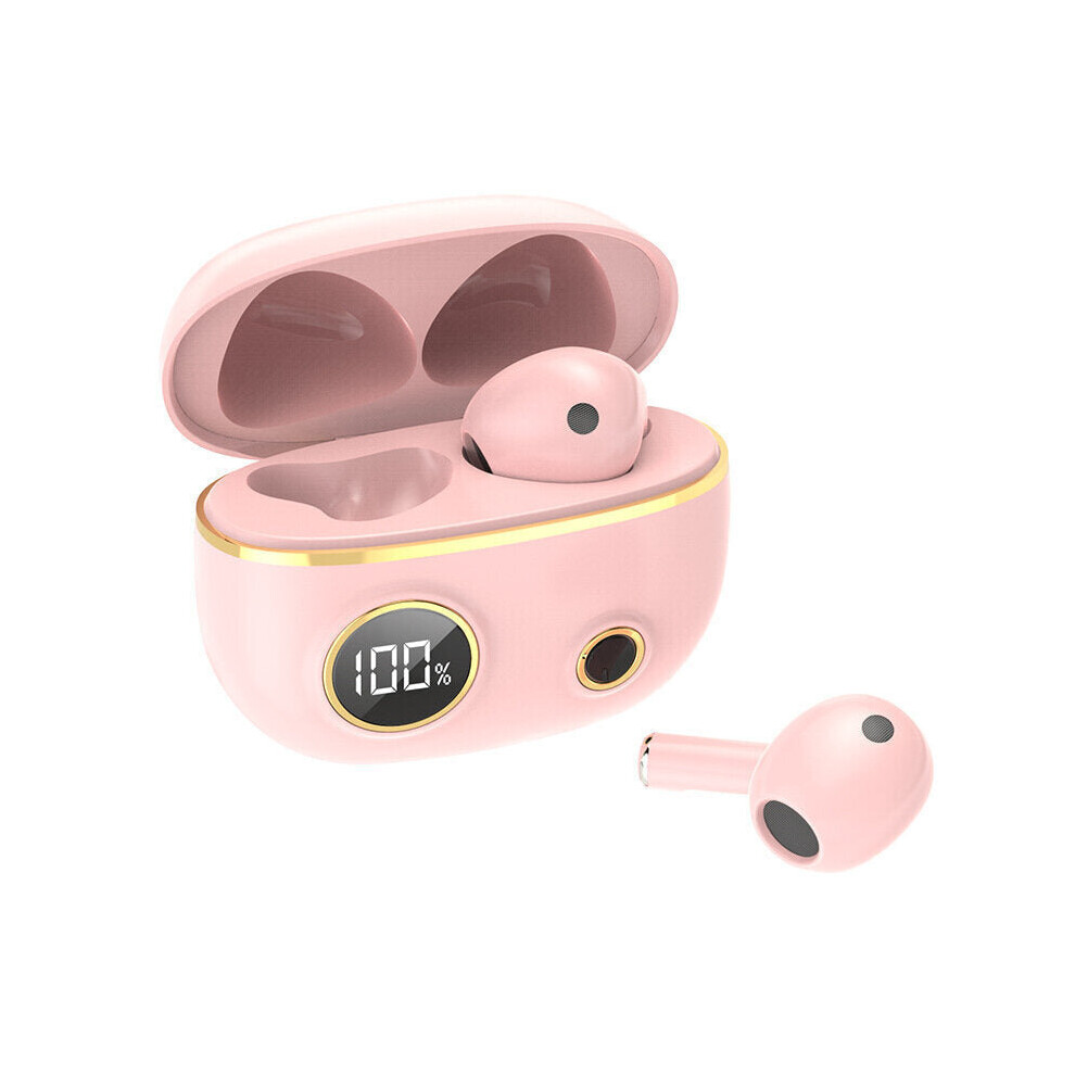 (Pink) TWS bluetooth Wireless Headphones LED Digital Display Mini Sports HiFi D Stereo Sound Headset With Microphone
