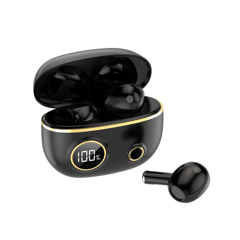 (Black) TWS bluetooth Wireless Headphones LED Digital Display Mini Sports HiFi D Stereo Sound Headset With Microphone