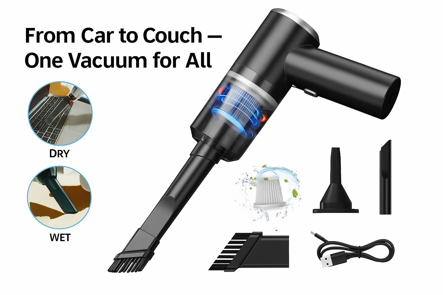 Cordless Handheld Vacuum Cleaner 12V | Portable Car & Home Mini Hoover Wet & Dry