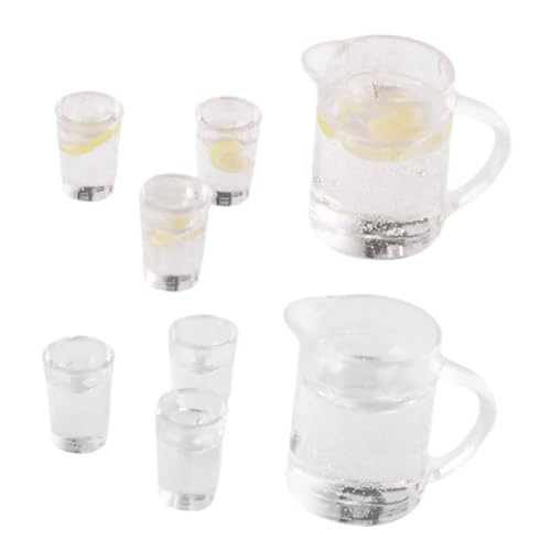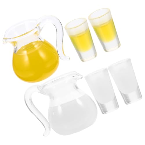 SUPVOX 8pcs Miniature Dollhouse Drink Set Mini Lemonade Kettle 3 Cups and Mini Water Pitcher 3 Cups for Dollhouse Decoration and Photography Props
