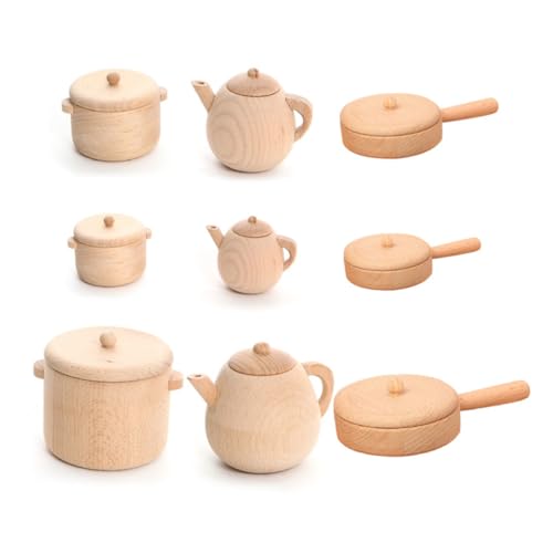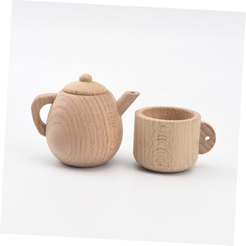 IWOWHERO Solid Wood Tableware Mini Tea Kettle Simulation Kitchen Playset for No Paint Beech Wood Educational Role Play for Home Nursery S