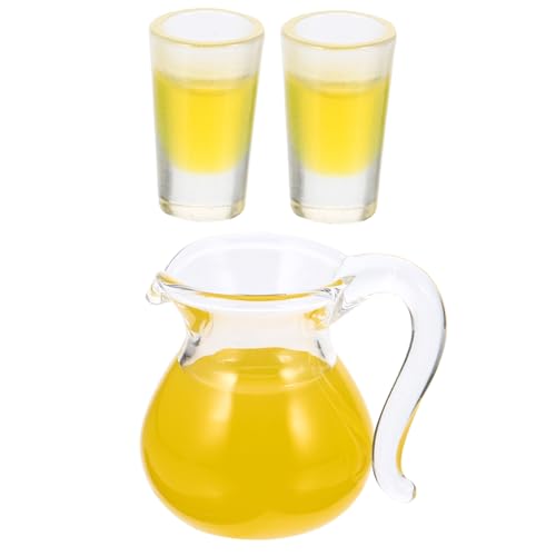 HONMEET Miniature Juice Jug with Cups for Dollhouse Micro Landscape Layout Realistic Mini Kettle Prop for Miniature Food Scene Decoration and Collectible Dollhouse Accessory