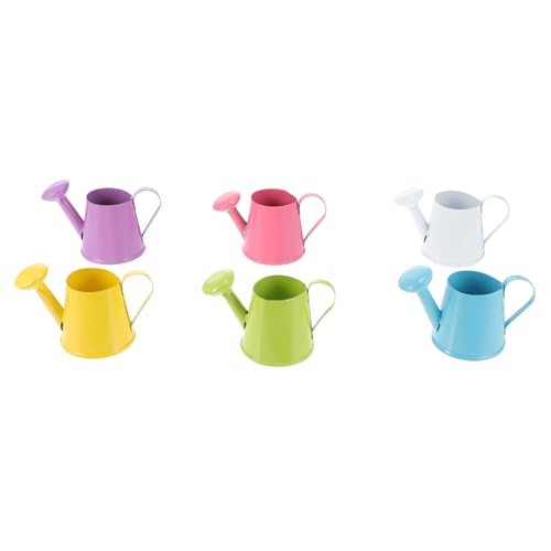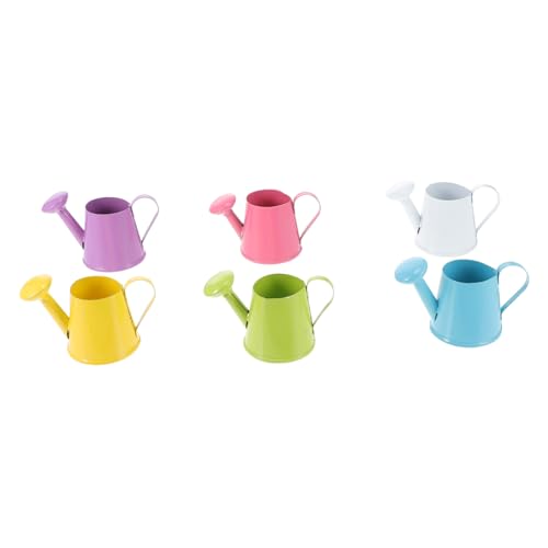 DECOMELODY 6Pcs Mini Kettle Decor Candy Color Small Watering Can Ornaments Portable Home Craft Accessories for Miniature House and Photography Props