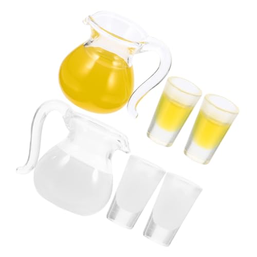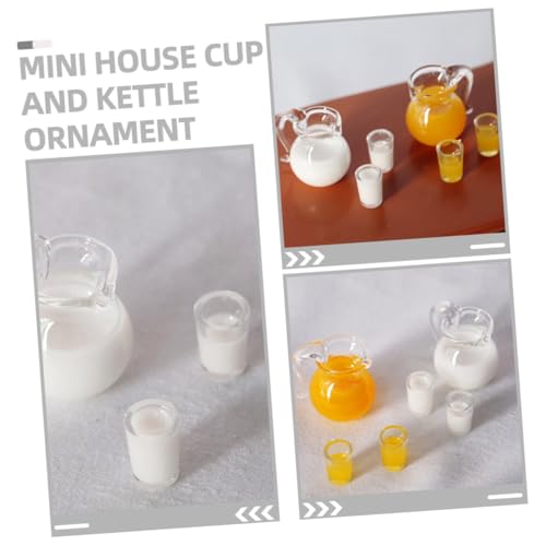 UPKOCH Miniature Juice Jug and Cups Resin Dollhouse Accessory Mini Kitchen Decoration Mini Water Kettle for Tiny Home Scene Layout and House Adornment