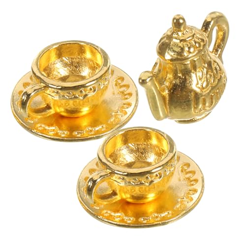Abaodam Miniature Tea Set for Dollhouse Small House Ornament with Mini Kettle and Teacups Pretend Play Accessory for Home Decoration