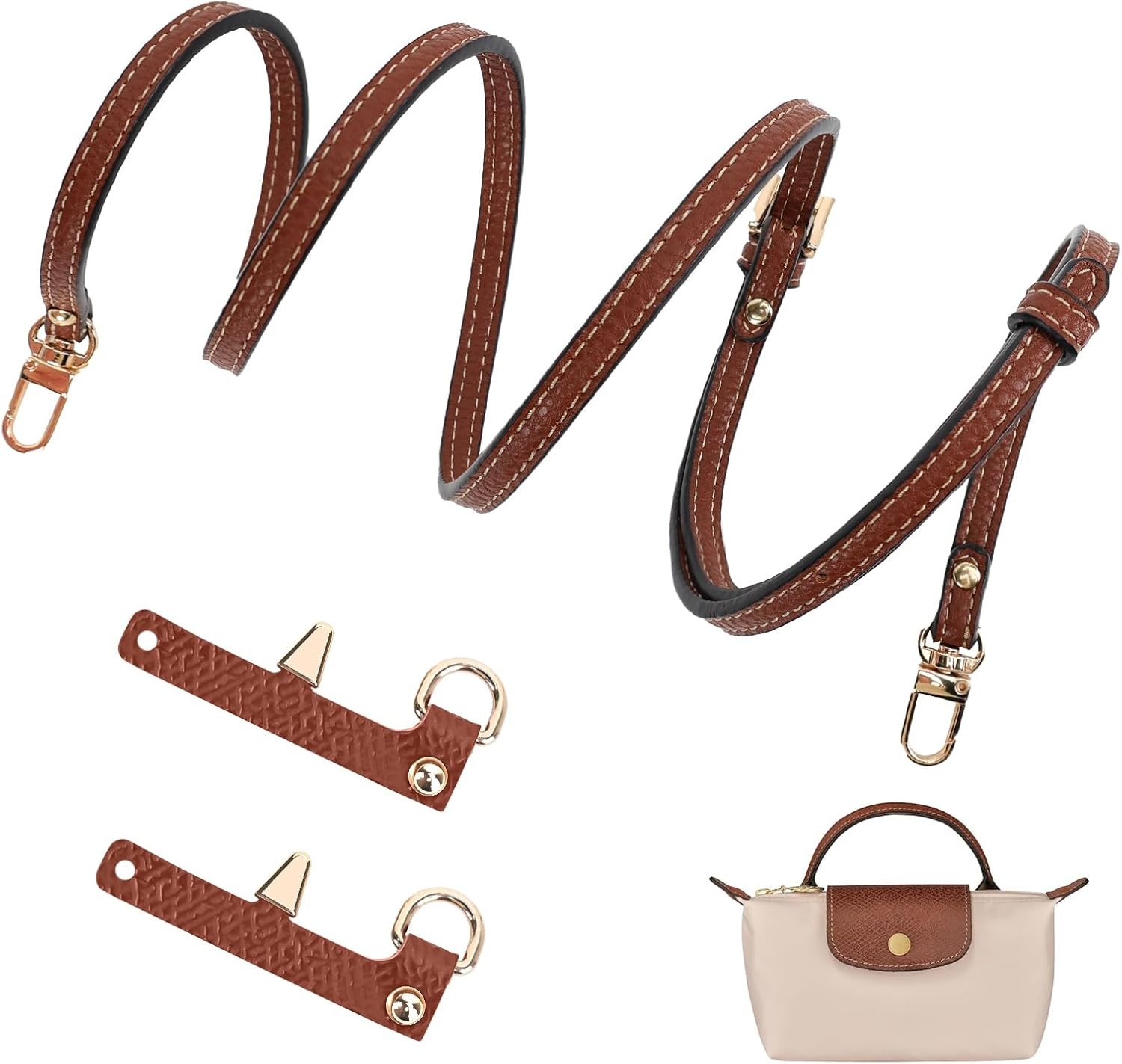 Zouboto Strap for Longchamp Mini Bag Strap,Adjustable Bag Straps for Crossbody Handbags,Punch-Free Adjustable Buckle Design for Long Champ Bag (Brown Gold)