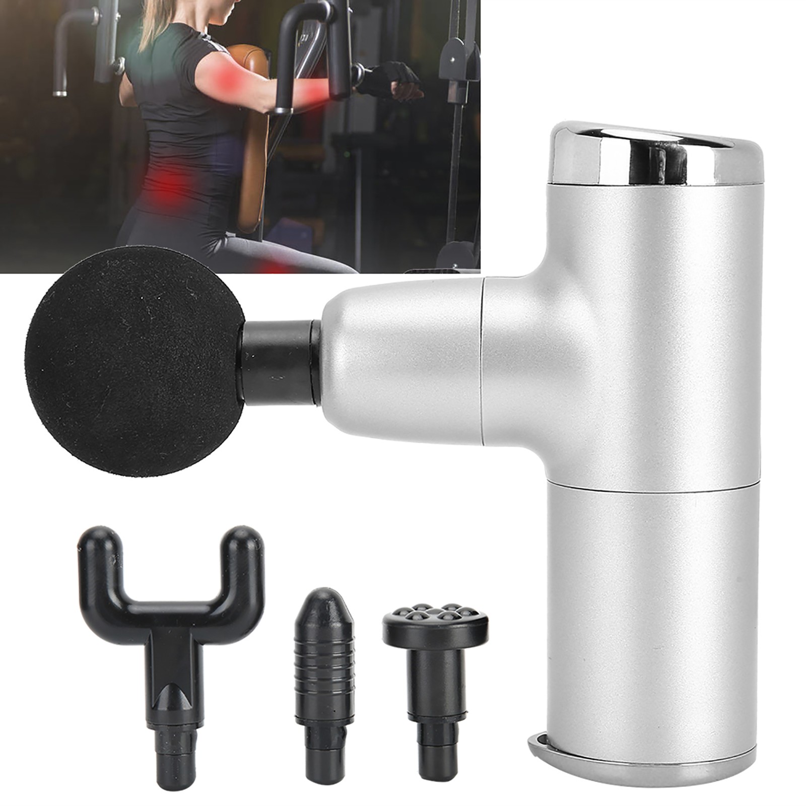Silver White Mini Massage Gun Portable Adjustable Muscle Pain Fatigue Relive