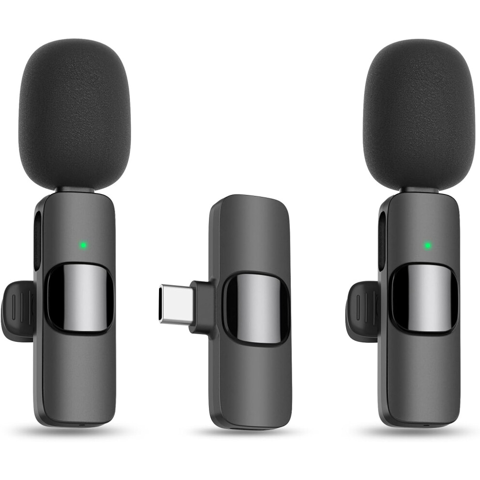 Wireless Lavalier Lapel Microphone for iPhone 15 Series/Android/Computer - Bluetooth Mini Phone Microphones - 2 Clip on Mics with USB C Interface