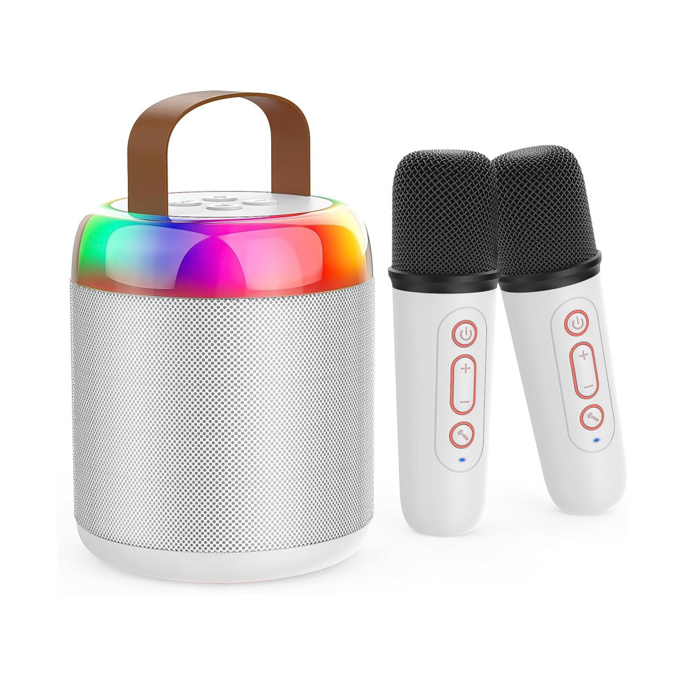 (White With 2 Microphones)Mini Karaoke Machine Karaoke Speaker With