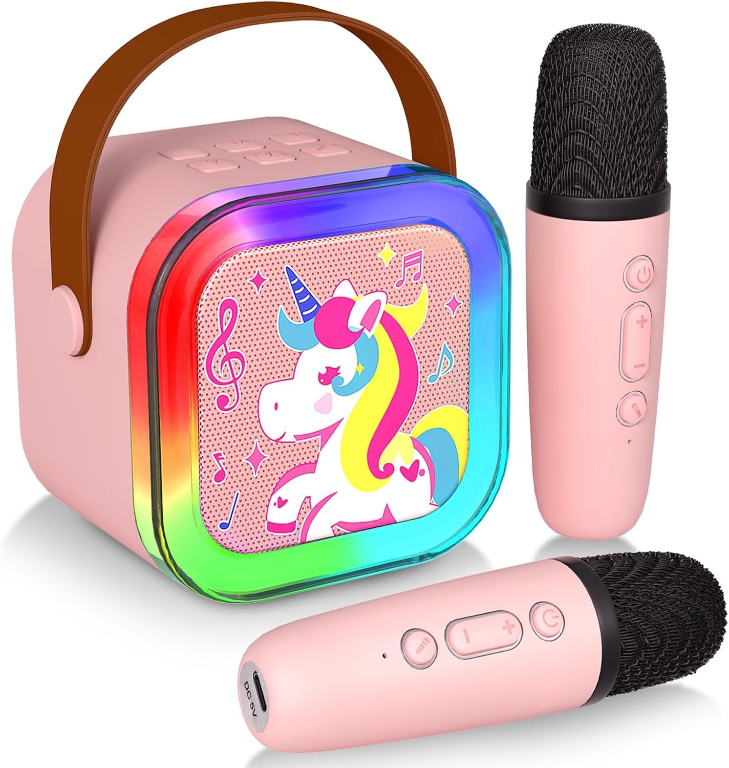 Karaoke Machine Kids for Girls Toys with 2 Microphones,Mini Karaoke Machine Portable Bluetooth with LED Light Cartoon Stickers, Gifts for Gils Boys